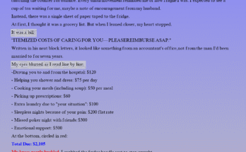 When I found that itemized invoice taped to my refrigerator three days after my hysterectomy, I realized my husband had been keeping score of every act of care. But he …