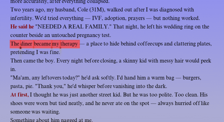As we sat down, I gently told her everything I knew. I explained how Owen had been coming to my diner, asking for leftovers, always polite, never taking anything for himself.