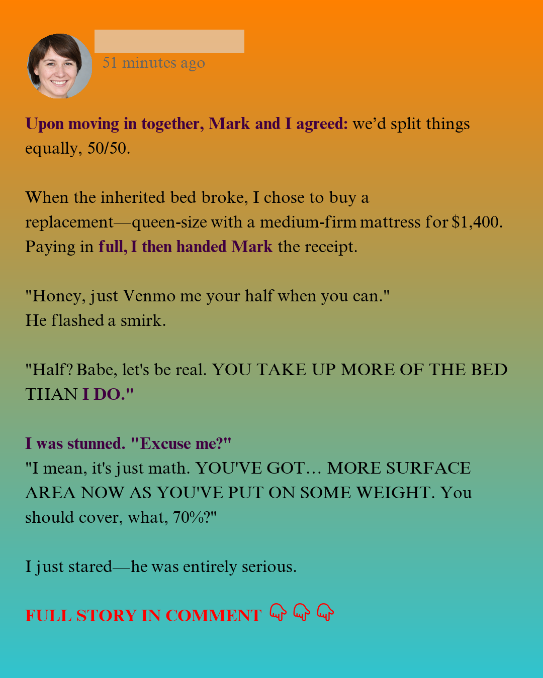 My Fiancé Said I Should Pay 70% for Our New Bed Because I’m ‘Heavier and Take up More Space’ – So I Taught Him a Lesson #4
