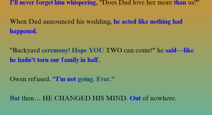 When my dad called to invite my 12-year-old brother and me to his wedding, I thought the worst part would be watching him marry the woman who destroyed our family. I had no idea my quiet little brother had been planning something that would make their special day unforgettable.