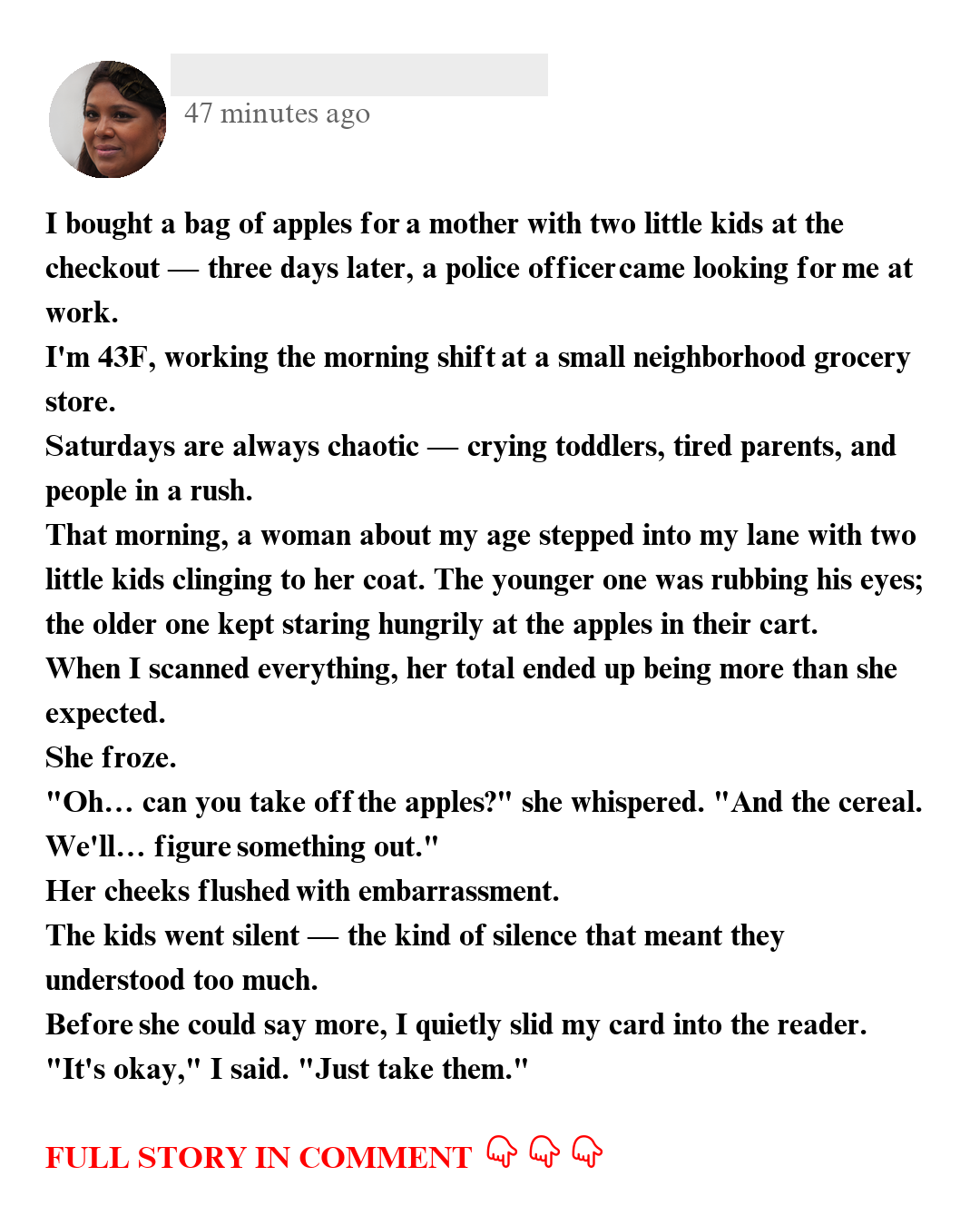 I Bought a Bag of Apples for a Mother with Two Little Kids at the Checkout — Three Days Later, a Police Officer Came Looking for Me at Work #20