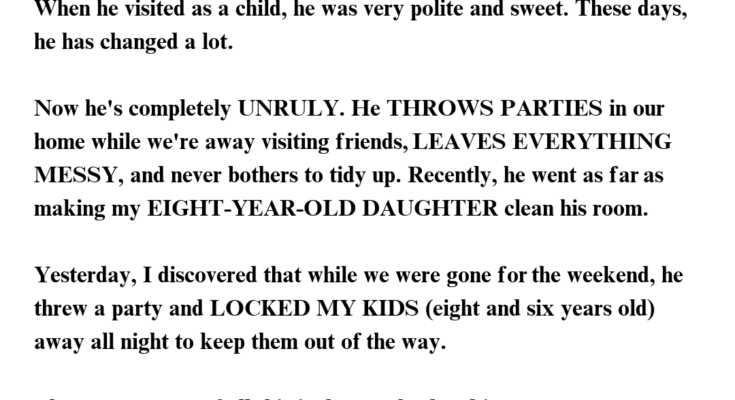 A week into Jake’s stay, I noticed a change. He was no longer the polite boy I remembered.