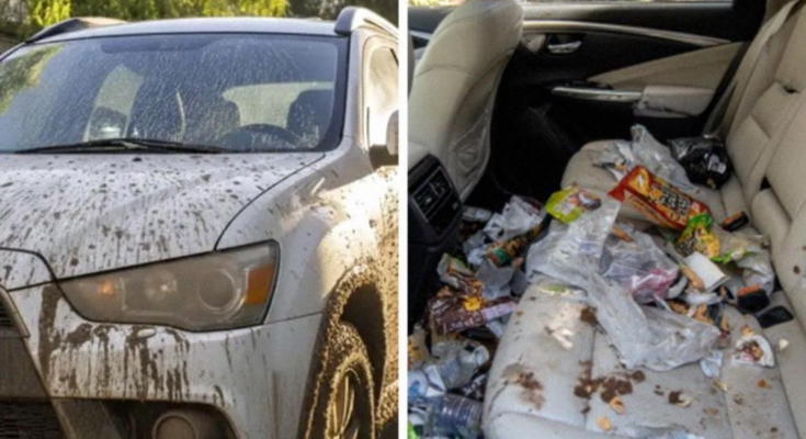 There were crushed crackers, sticky cup holders, crumbs, grease stains, juice stains on the seats, and fast-food wrappers. The smell hit me like a punch.