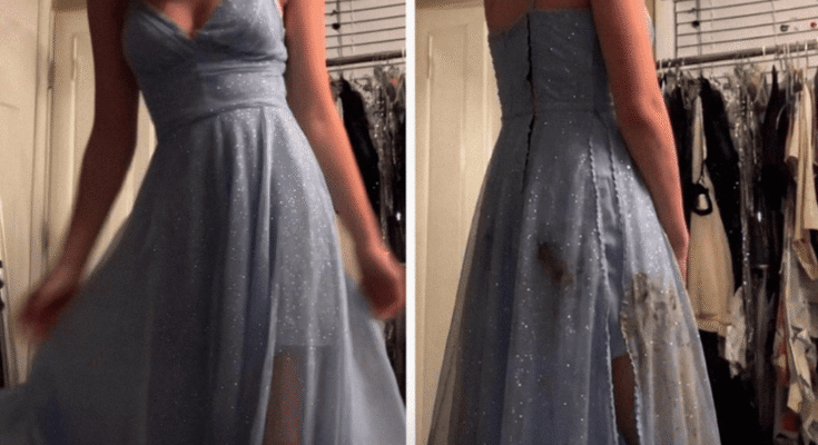 The caption read: “Laugh if you ripped your sister’s cheap prom dress 🤣💀”
