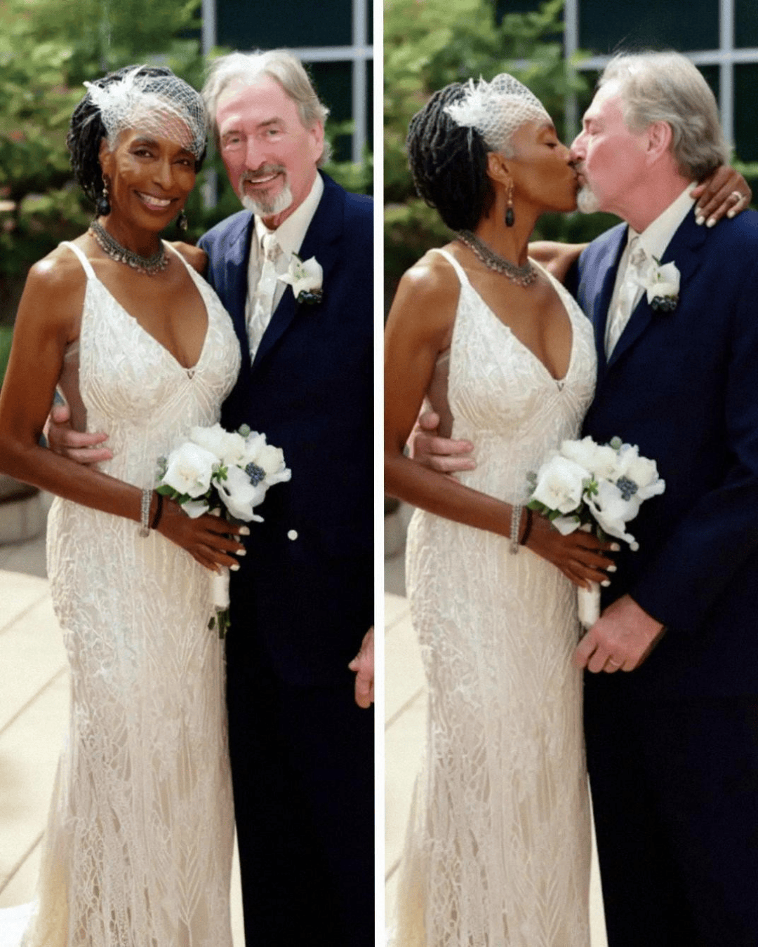 The wedding photos showed up online within hours. Professionally shot, perfectly filtered, hashtags about “new beginnings” and “finding light in darkness.” Linda’s dress was champagne-colored with lace sleeves.