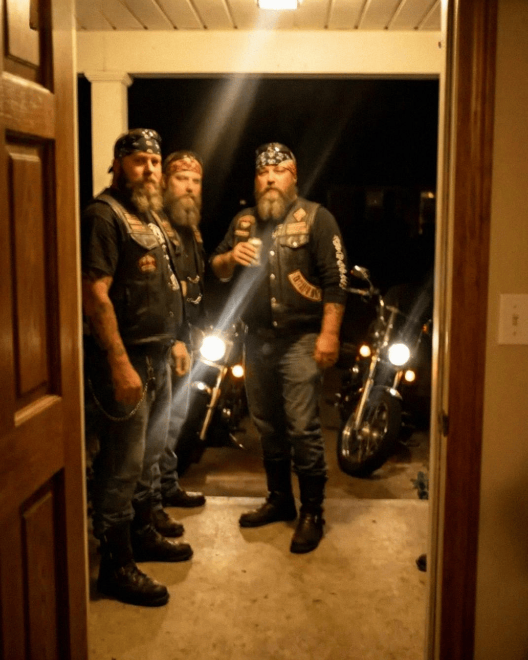 The man in front was huge. Broad shoulders. Gray beard. Tired eyes. He stood at the edge of my porch, like he wouldn’t cross it without permission.