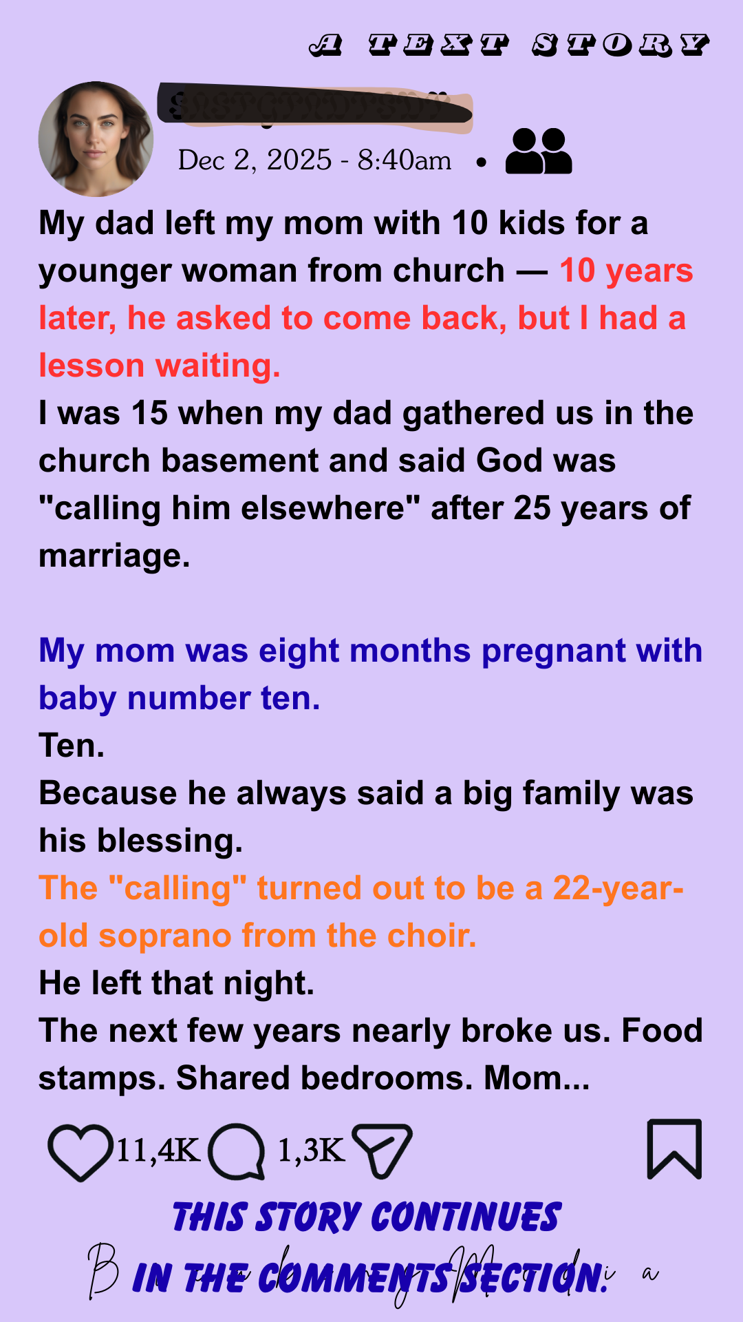 “My mom had ten kids,” I started. A soft laugh rolled through the room. “She married a man who called a big family his blessing.”
