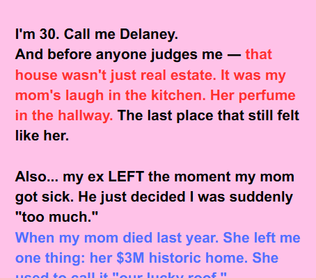 I’m 30. You can call me Delaney. Before anyone starts judging me, I want you to understand that my mom’s house wasn’t just any property.