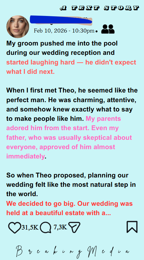 My Groom Pushed Me Into the Pool During Our Wedding Reception and Started Laughing – He Didn’t Expect What I Did Next