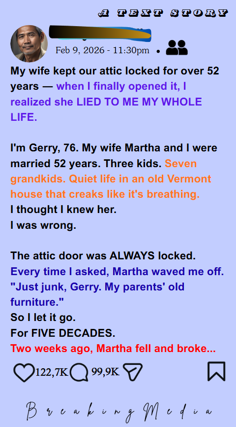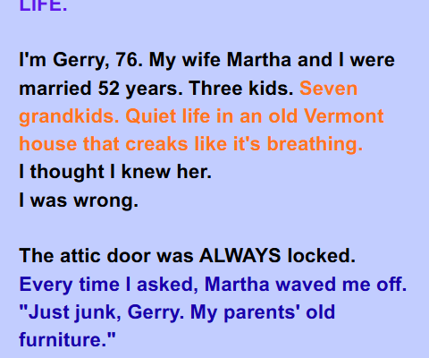 For 52 years of marriage, my wife kept our attic locked tight. I trusted her when she said it was just old junk. But when I finally broke that lock, what I found inside changed everything I thought I knew about our family.
