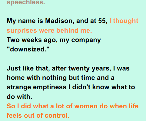 My name is Madison. At 55, I honestly believed the era of life-altering surprises was behind me.