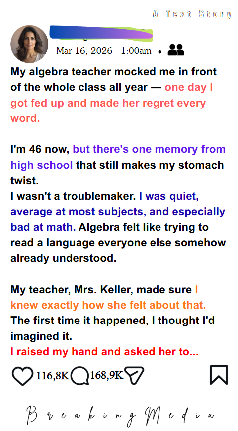Mrs. Keller had been the algebra teacher at our school for 12 years, beloved by parents, trusted by administrators, and practically untouchable. She had a smile she deployed like a weapon.