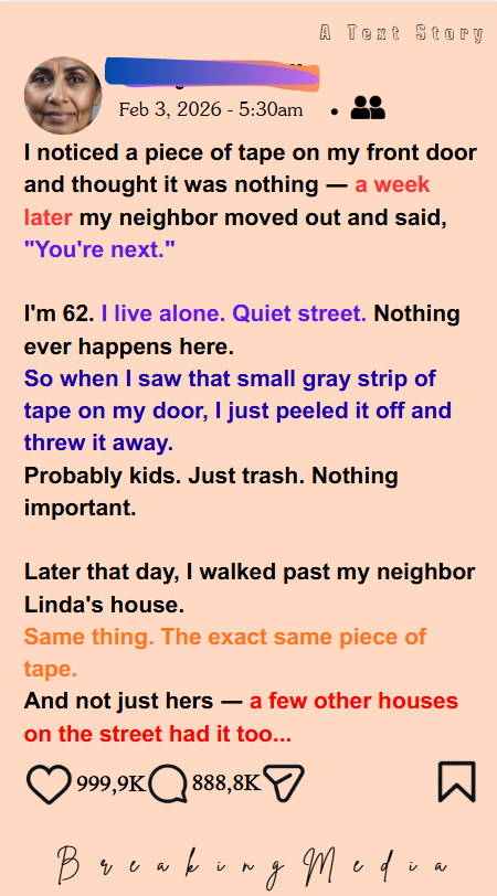 That afternoon, I walked past Linda’s house and saw the same tape on her door. Same size. Same spot. Two more houses down the block had it too.