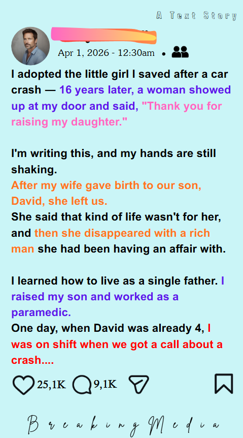 I Adopted a Girl I Rescued After a Car Crash – 16 Years Later, a Woman Showed up at My Door and Said, ‘Thank You for Raising My Daughter, Now You Need to Know the Truth About That Day’