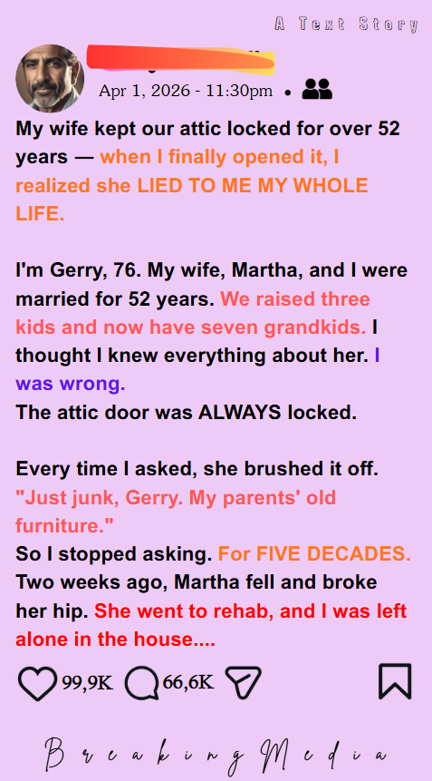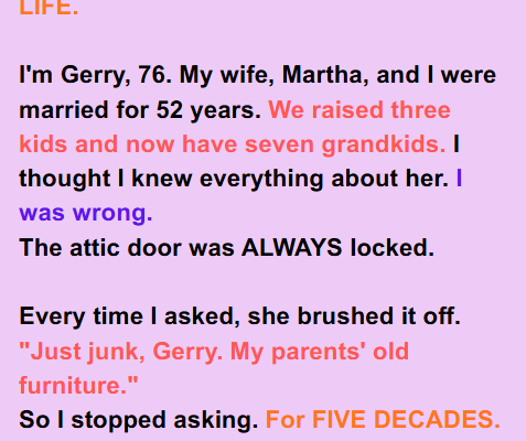 For 52 years of marriage, my wife kept our attic locked tight. I trusted her when she said it was just old junk. But when I finally broke that lock, what I found inside changed everything I thought I knew about our family.