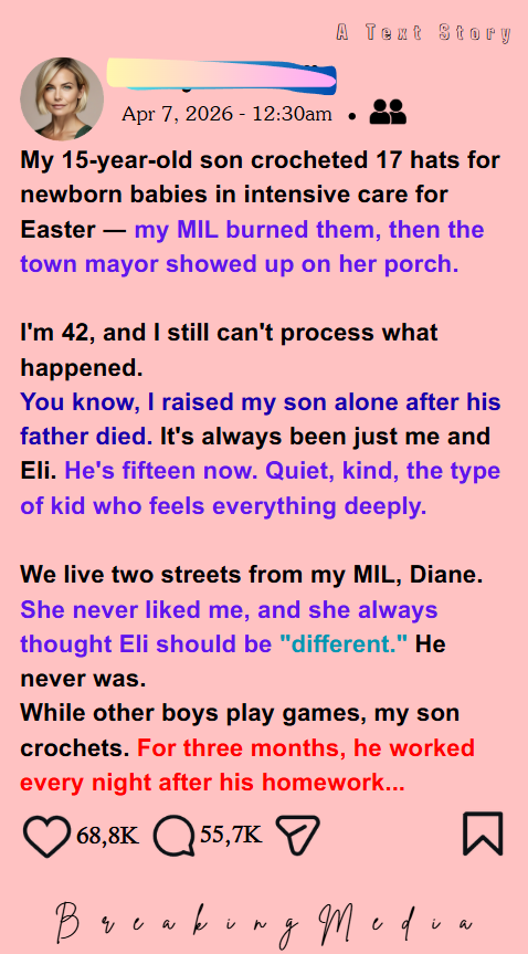 My 15-Year-Old Son Crocheted 17 Hats for Newborn Babies in Intensive Care for Easter – My MIL Burned Them, Then the Town Mayor Showed up on Her Porch