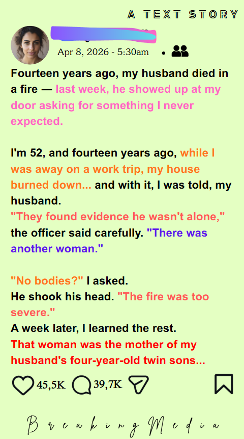 My husband died 14 years ago… or so I thought. Last week, he showed up and tried to take the sons I raised alone. He even thanked me for raising them! I didn’t fight him. I just gave him one condition — and let the truth do the rest.