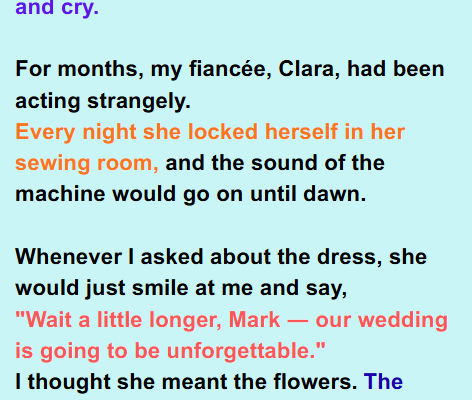 For months, my fiancée, Clara, had been acting strangely. Every night after dinner, she disappeared into the spare room at the end of the hall, which she’d converted into a sewing room.