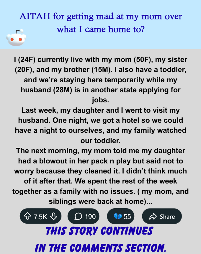 I (24F) currently live with my mom (50F), my sister (20F), and my brother (15M). I also have a toddler, and we’re staying here temporarily while my husband (28M) is in another state applying for jobs.