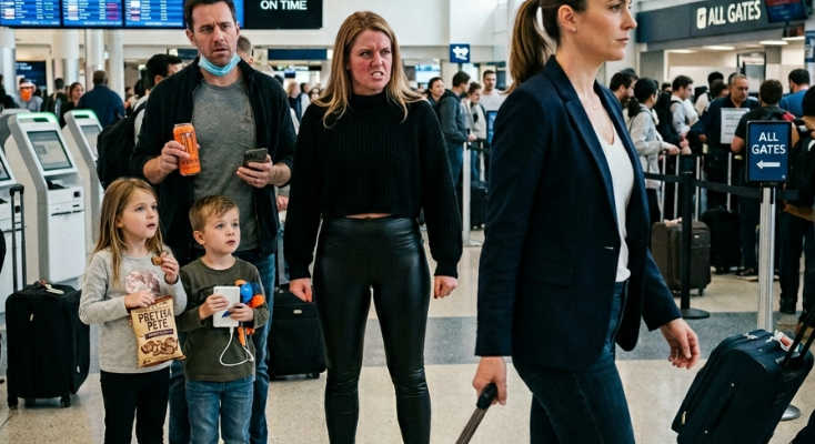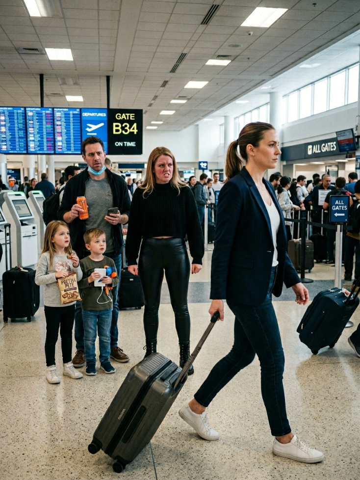 We were standing in Terminal C at O’Hare, surrounded by roller bags, impatient children, and the smell of burnt airport coffee. My older sister, Melanie, wore leather leggings, a cropped sweater, and the expression she always got when she was about to turn irresponsibility into someone else’s emergency. Beside her, my ten-year-old niece and nephew—Lila and Owen, the twins—were sharing a bag of pretzels and arguing quietly about whose turn it was to hold the portable charger. Beyond security, her husband, Nate, was buying energy drinks and checking his phone every twelve seconds because he treated every trip like a race he had to win.