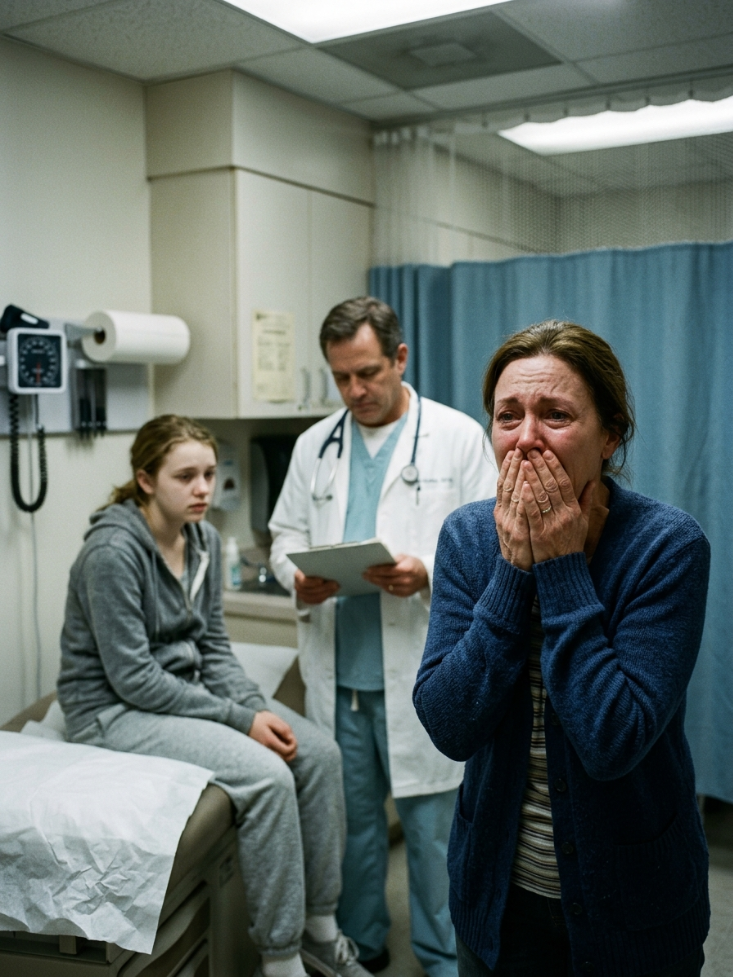Hailey was sitting beside me on the exam table, shivering despite the heated blanket draped over her shoulders. Dr. Adler stepped closer, lowering his voice even further.