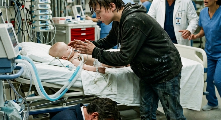 That day, the rain wouldn’t stop. Tyler stood near the hospital entrance, soaked to the bone and shaking from the cold. He didn’t beg; he never had. He just stood there, watching. People came and went, warm and dry, carrying lives and comforts he had never known. Desperate to escape the freezing downpour, Tyler slipped through the sliding glass doors, quietly padding down the polished corridors until he reached the VIP pediatric wing, drawn by the unnatural, heavy silence spilling from Room 402.