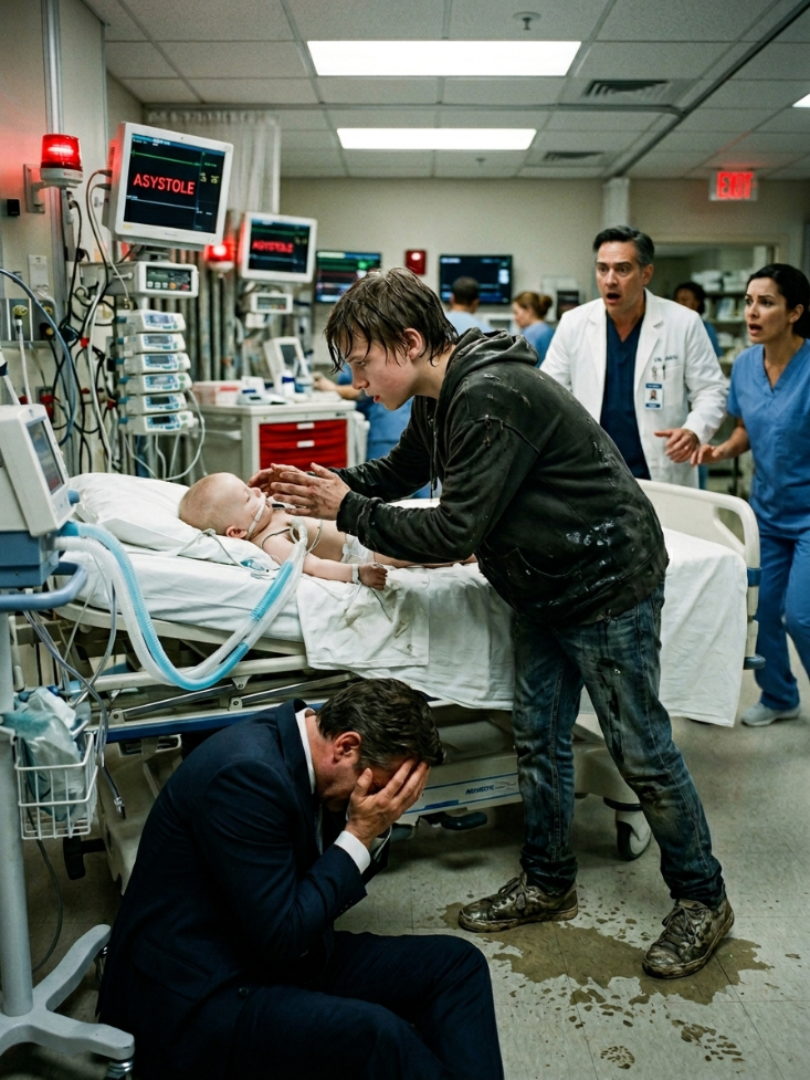 Tyler didn’t wait for praise. He simply stepped back, wiped the rainwater from his brow, and walked silently out of the room, leaving the arrogant doctor staring at the screaming infant in absolute, pale-faced horror.