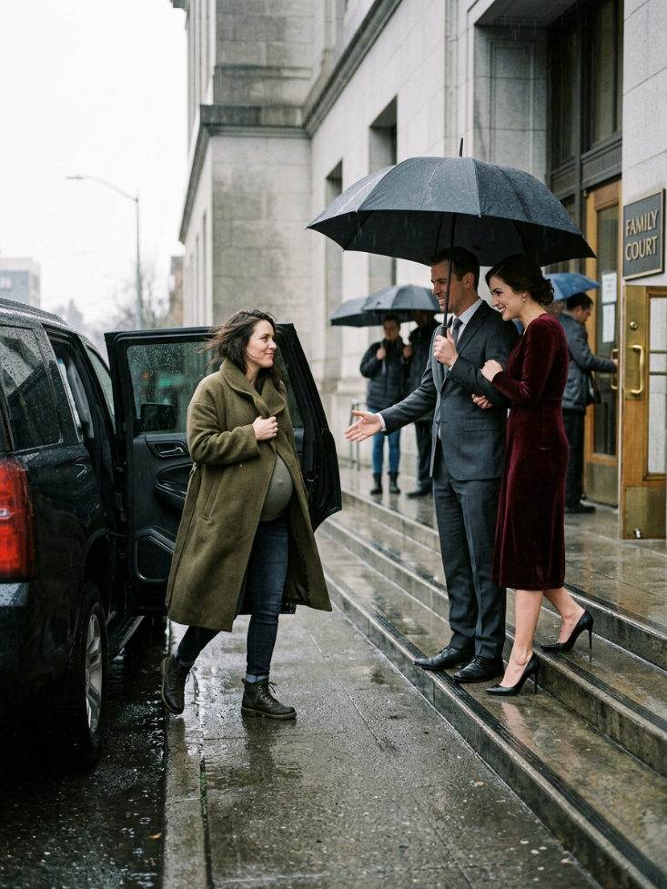 Madeline adjusted the seatbelt beneath her eight-month belly and stared at the courthouse through a windshield blurred with condensation. Cold October rain streaked down the glass like tears she refused to let fall. Today was not about breaking down. It was about reclaiming her dignity, even if no one else recognized it yet.